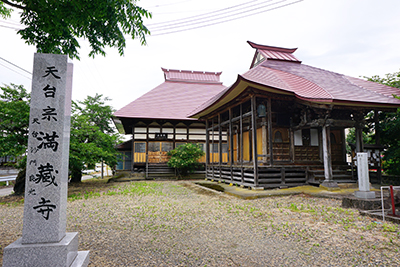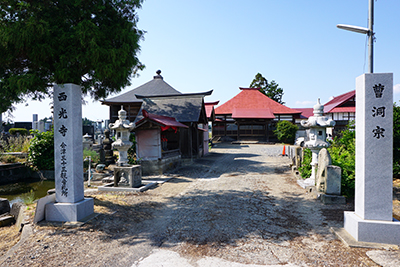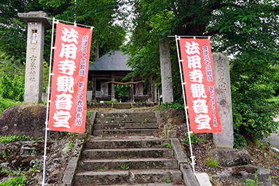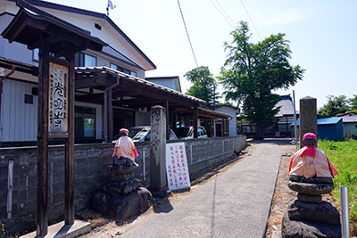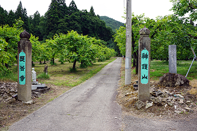 第7番札所「熊倉観音」へは、再び県道337号線に戻り、磐梯山の方に向かって3qほど進みます。右側に吉本屋というラーメン屋さんのところの信号を左折し、100mほど入ると、右側に「紫雲山 光明寺」という隷書で書かれた看板があります。そこが目指す観音さまです。