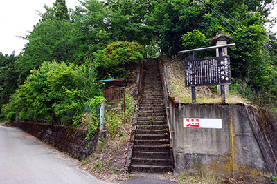 進行方向の左側ですが、そこに駐車場もあり、周りは杉の木で囲まれています。そのせいか、周りは一般の住宅があり、しかも近くに高校があっても、ひっそりとした雰囲気があります。