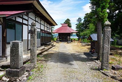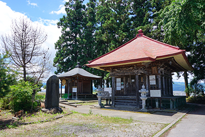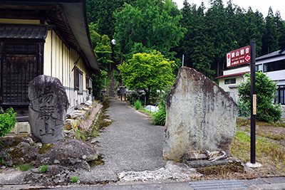 観音堂は左側にあり、右側には子育薬師堂があり、観音堂の右側には、「日本遺産 会津の三十三観音めぐり」のどこの札所にも設置されている看板が立っていました。これは「極上の会津プロジェクト協議会」が建てたもののようで、統一された案内板です。たしか、会津の三十三観音めぐりのことをBS-TBS「日本遺産」で放送されたことがあったので、その前後に設置されたもののようです。