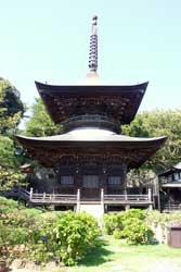 本堂の中に入ってお詣りをしてもいいということで、なかで般若心経や諸真言を唱えました。終わって外に出ると、その真横に多宝塔がありました。もともとは三重塔だったそうですが、 嘉永6年(1853に多宝塔に改めたそうです。青空をバックにスーッと建ち、むしろ本堂よりも古格を感じさせます。