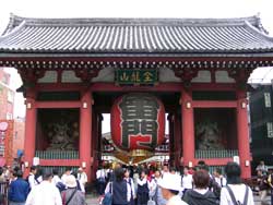 2006年9月26日、東京出張の折に浅草の観音さまに参詣しました。ここは東京都唯一の札所ですが、おそらく現在の東京は坂東霊場選定時はまだ広々としたアシの原だったようです。唯一その当時から隆盛を極めていたのがここ浅草寺でした。寺伝では、推古天皇の時代に漁師の檜前(ひのくまの)浜成と竹成の兄弟が隅田川で漁をしていたとき、その網に高さ1寸8分の金色の観音さまがかかったので、豪族の土師中知(はじのなかとも)と相談し祀ったのだといいます。あの有名な三社祭の氏神がこの3人だということです。