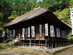 創立は白鳳2年(673)といい、役の行者の修行場ともいわれ、平安時代に作られた蔵王権現をまつっていました。しかし、昭和60年11月の放火でそれら仏像が消失したそうで、とても残念なことです。最近、仏像などの盗難が相次ぎ、テレビなどでも放映されましたが、火事は一時で全てを失ってしまいます。しかも、それが放火とあっては、何をか況んやです。放火はまったく人災ですが、各寺院が火事などの災難に対する対策を施すことも大切だと思いました。そういえば、先ほどの第11番安楽寺では、自主消防の放水がありましたが、これも何かの縁、少し水はかけられましたが、常の訓練は大切なことです。