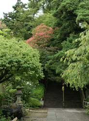 参道を歩くと、両側にはドウダンやツツジが植え込まれ、さらに木の階段を上るとあちらこちらに西洋シャクナゲも植え込まれていました。ご住職にお聞きすると、「西洋シャクナゲではなく、洋シャクだよ」と答えてくれました。もちろん、それ以上は聞きませんでした。