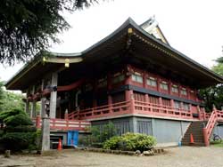 駐車所に車を駐め、道路を横切って室町時代に建立されたという仁王門を入ると、唐破風の向拝のある本堂が見えます。このお堂は昭和63年5月16日に市指定重要文化財になっていて、天正8年(1580)に再建させたものだそうです。明治の神仏分離のとき、修験とのかかわりも強く、本尊さまは祖師堂に移されたそうですが、36代山主の妻が「十一面観音さまを観音堂へ返して欲しい」と当時の高崎郡役所に日参し嘆願したそうで、それで戻ることになったと解説書には書かれています。