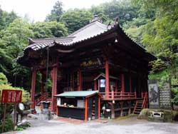 このお堂の右手から奥の院への道が続いていて、聞くところによるとそこまでは往復40分はかかるとのこと、今回はすべて巡拝するのが最大の目的なのであきらめました。案内板によると、奥の院は舞台造りで、その前には落下6メートルほどの大悲の滝もあり、行者はここで垢離を行ったそうです。