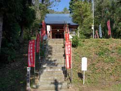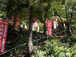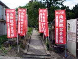 ちょうど広幡小学校のわきにあり、長い参道はその小学校の建物沿いに通って行きます。入口にはたくさんの置賜三十三観音の幟旗が立ててあり、すぐにわかります。