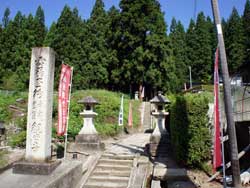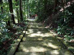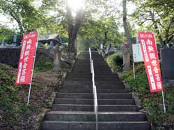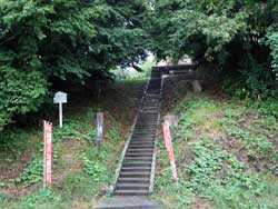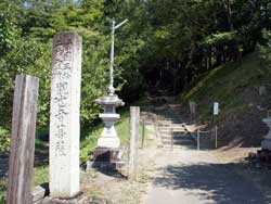 国道348号線を右折し、朱塗りの関寺橋を渡るとすぐの右正面に石段がありました。その石段の左手に円光寺があり、そこをそのまままっすぐに進みます。石段わきには石製の献燈籠や外灯などもあり、今も夜にお詣りするときもあるようです。