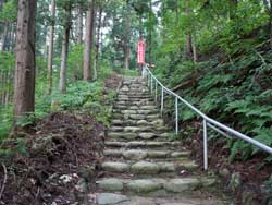 駐車場に車を駐め、本堂入口の朱印所で朱印を押し、それから観音堂への石段を上りました。これが置賜第33番札所の二つ目のお詣りですが、第33番札所を先にお詣りするのもなんとなく落ち着かないものです。もちろん、順番にお詣りできればその方がすっきりしますが、ここ置賜第33番札所はほとんどがバラバラです。第1番札所は上小菅ですが、第2番札所は手ノ子にある高峰観音で、最短距離でも18キロほどあります。しかも、この高峰観音はもともと高峰、つまり白川ダムで水没したところから現在地に移築されたものですから、昔はもっと離れていたことになります。そんなことを考えていると、2日ではまわれないので、先ずはまわりやすい順番でまわっているということになります。