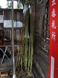 また、お堂の左柱には、外灯もあり、少しばかり薄暗くなってもお詣りできそうです。格子にはたくさんの納め札が張られ、今年のように多くの方々がお詣りされるとすぐに貼るところがなくなってしまうので、納め札の箱も用意されているといいのにと思いました。