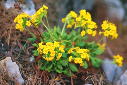 (画像サイズは39.4KB) これは中国雲南省の麗江の玉竜雪山で撮影しました。標高は、3,100mでした。学名はおそらく Primula forrestii で、中国名を「黄葵報春」といいます。10年ほど前、この近くでこの花を撮影したことを思い出しました。(1997.05.19) |