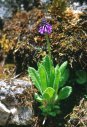 (画像サイズは52.8KB) これは中国雲南省の中甸、碧塔海保護区で撮ったサクラソウです。標高は、3,440mでした。学名はおそらく Primula argutidens で、中国名を「尖歯報春」といい、雲南省では中甸でしか見られないそうです。四川省西北部、チベット東南部にも分布しています。(1996.07.30) |