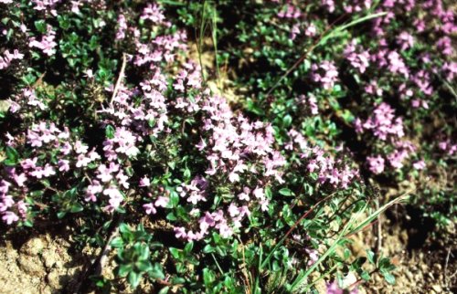 (画像サイズは68.9KB) これも上記と同じ場所で撮影したジャコウソウの仲間です。この付近にはたくさん自生しており、ほとんど日本の「イブキジャコウソウ」と変わらないように思いました。(1988.05.09) |