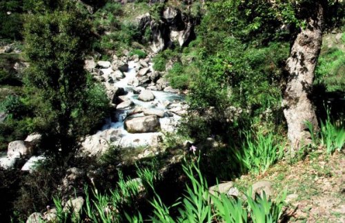 (画像サイズは66.4KB) これはインドのヒマチャール州のクルというところのモール渓谷で撮影したアイリスの仲間です。左手に見えるのが渓谷で、水が素晴らしく綺麗なことに驚きました。(1988.05.09) |