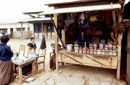 (画像サイズは47.9KB) これはウォンディポドンのゾンのすぐ前に広がるバザールです。日用品など多くの品物がありましたが、やはり子供たちが集まるのは安くて美味しいお菓子の店。このガラスの入れ物も、何かすごく懐かしいような感じでした。(1986.04.15) |