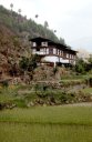 (画像サイズは45.5KB) これはウォンディポドンのゾン近くの民家です。この辺りは気候も安定しているので、農作物の収量も多く、立派な民家も多いようです。家の外壁に描かれた吉祥文様も遠くから見えました。でも隣の家とはそうとう離れていると感じました。(1986.04.20) |