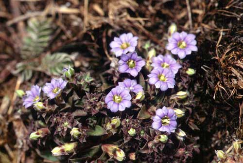 ミルケダンダのヤクの放牧地で見かけたリンドウです。シェルパの人たちは、これを食べると聞き、その晩にスープに入れてもらい食べてみました。やはり苦いものでした。(2001.04.15)