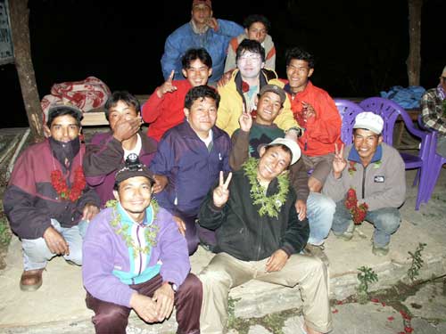 (画像サイズは30.4KB) これはトルカという村ですが、アンバブさんの知り合いの方のすすめで、周辺の道を補修するための寄付をすることにしました。その夜に、私たちや私たちのガイドやポーターたちもヒカゲノカズラやシャクナゲの首飾りをしてもらいました。まさに、『古事記』の世界でした。(2002.03.08) |