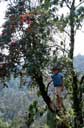 (画像サイズは44.3KB) これはポタナ(Pothana)の下の一軒家で撮ったもので、シャクナゲの木に子供が登って花を採っていました。それを採って何をするのかと聞いたら、神さまに供えるということでした。(2002.03.09) |