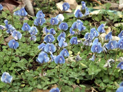 (画像サイズは39.0KB) これは、ポタナ(Pothana)で昼食をし、そこから少し下ったところで撮ったブルークローバーです。これを初めて中国の雲南省で見たときには、たった1輪でしたが、とても感動したものでした。(2002.03.09) |