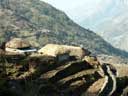 (画像サイズは34.5KB) これはピチュク(Bhichok)で撮った棚田の風景です。ここを過ぎるとディオラリ(Deurali)を越え、山の反対側の斜面にでます。そこからポタナ(Pothana)を通過し、ダンプス(Dhampus)に至ります。(2002.03.09) |