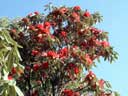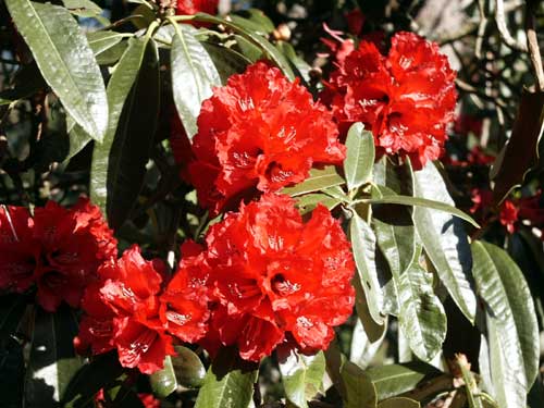 これはカトマンドゥから1泊の日程で行ける場所ですが、やはり、シャクナゲ保護のために詳しい場所は残念ながら明らかにできません。ここのエリアを少し離れると花色の変化はありますが、ここではあまりありません。(2002.03.13)
