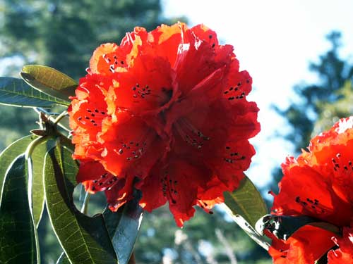 これは、上記のシャクナゲを逆光で撮ってみたものです。まったくのボール咲きだということが分かるでしょう。花組みも花数も申し分ない姿をしていると思います。(2002.03.13)