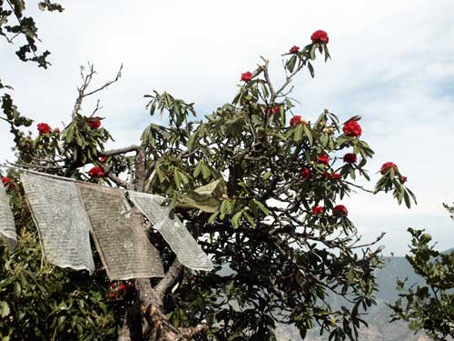 (画像サイズは39.9KB) これは、近くに有名なラマ寺院があるというので行った途中にあったもので、この布は「ダルチョ」です。これには経文が書かれていて、吹く風がこの布をはためかせると経文を読んだと同じ功徳があると言われています。(2002.03.14) |
