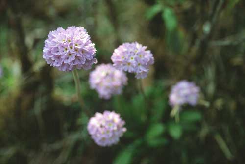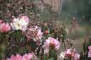 アルボレウムのピンク花は、ここで普通に見られるものですが、その向こうに三つ葉アケビの花が咲いていました。ちょうどつぼみが開きかけた状態で、それが朝露を含み、本当にきれいでした。(2004.04.02)