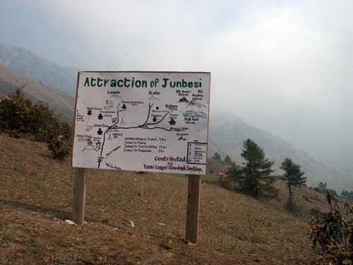 (画像サイズは26.4KB) これはズンベシ村の案内板です。この道はエベレスト街道といい、以前はこの村を通ってルクラへ行き、そこからエベレストに向かうのが一般的なルートでした。今では、トレッキングの人も少なくなりました。(2004.04.02) |