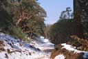 ここの谷間の沢筋にはたくさんのシャクナゲが自生していましたが、ここを下ると登りががたいへんそうなので、ここから眺めて引き返しました。見る限りでは、ほとんどがピンクや白っぽい花色のアルボレウムでした。(2004.04.03)