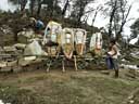 ゴーヤムに下がる途中で見かけた荷を背負うネパールの人たちです。その重さを尋ねたら、60Kgはあるそうです。試しにちょっと動かそうとしたらびくともせず、ここでピックリ腰でも起こしたら最悪なのですぐやめました。(2004.04.03)