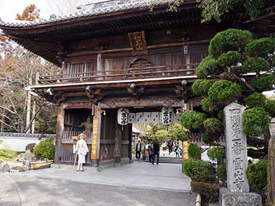 四国八十八ヶ所のお遍路は、ここ第1番札所から四国八十八ヶ所霊場会の公式ホームページによると、全行程はおよそ1460qだそうです。ここで巡礼に必要な納経帳や金剛杖などをそろえ、先ずは改めて第1番札所霊山寺の仁王門から入り直し、手水を使って身を清め、本堂、そして大師堂をお詣りし、これからの長いお遍路の無事満願を祈願しました。