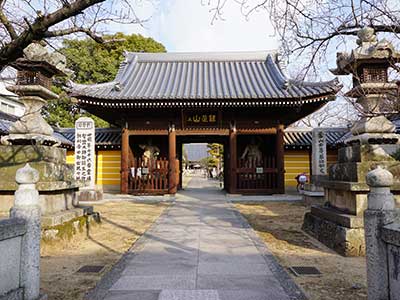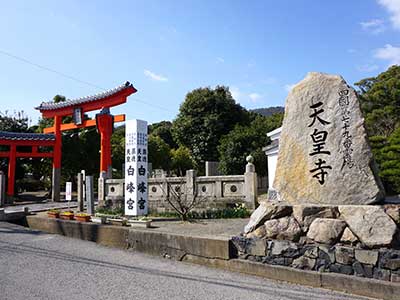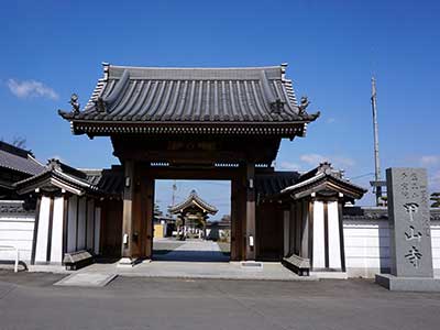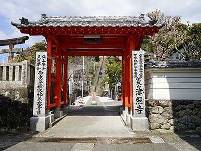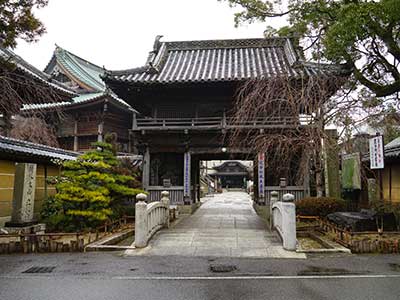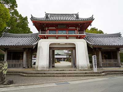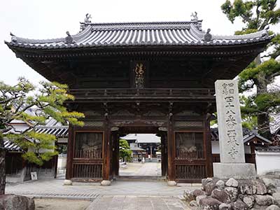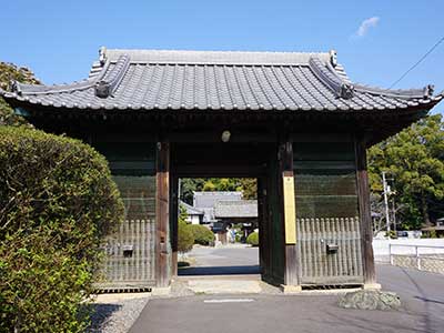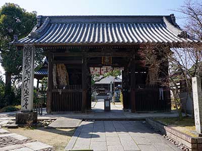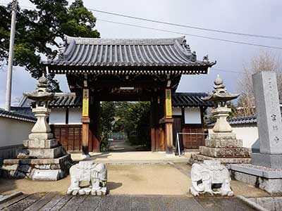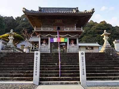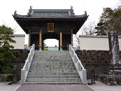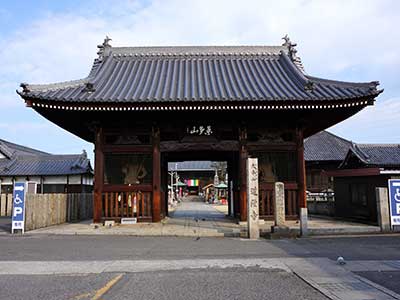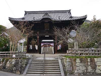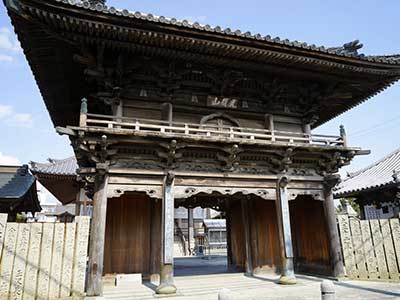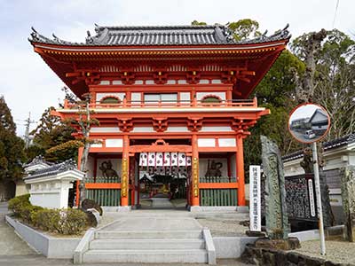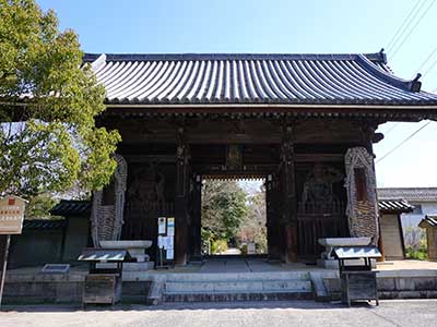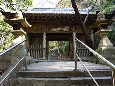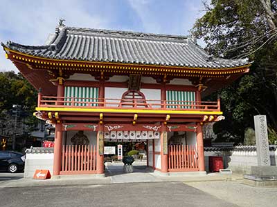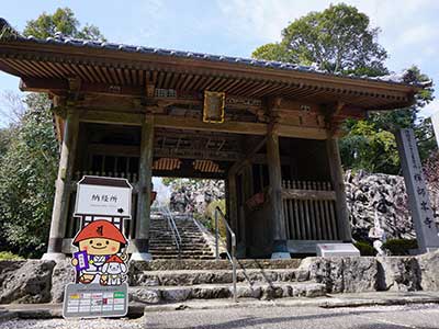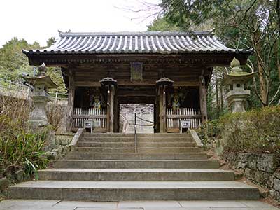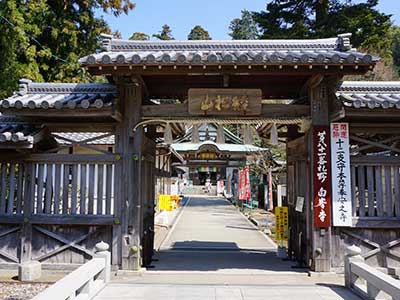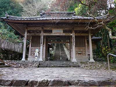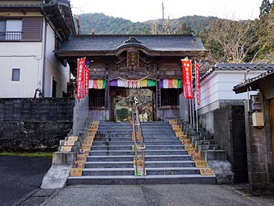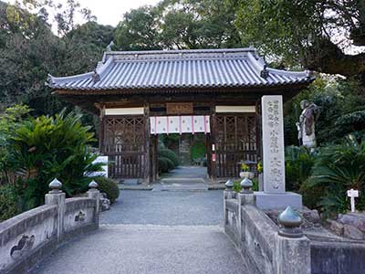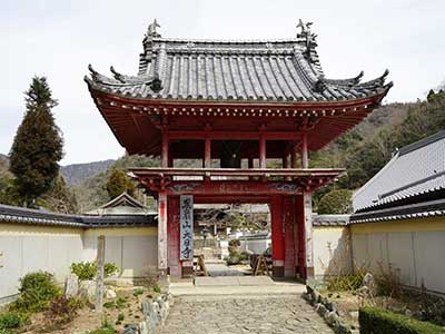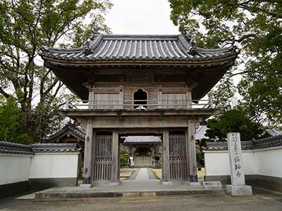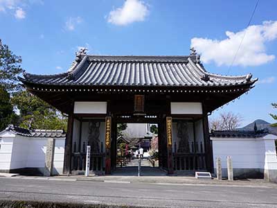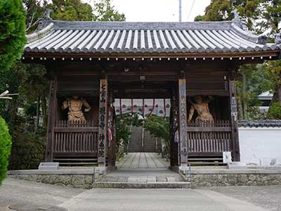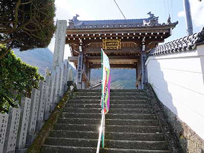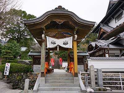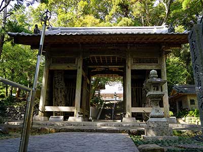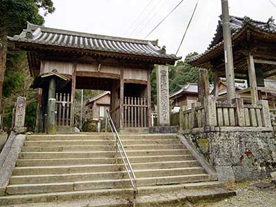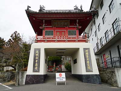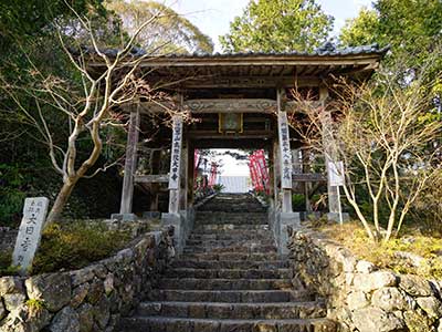 第7番札所十楽寺へは、再び県道139号線に戻り西に進むと、1qほどで札所の案内板があります。そこを右折すると、一見すると中国風な山門が見えてきます。