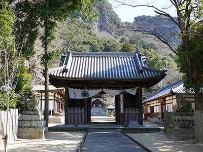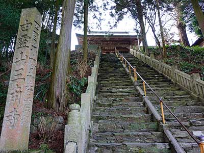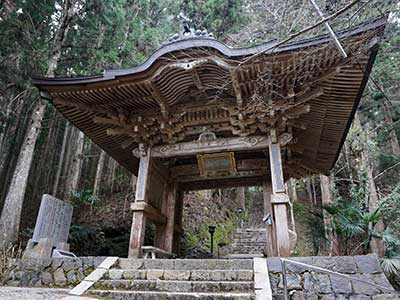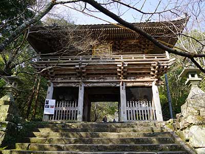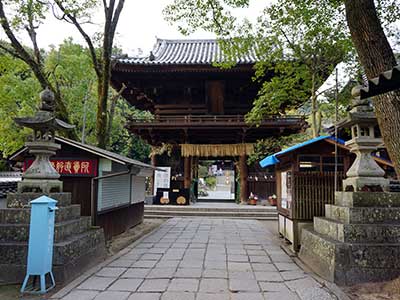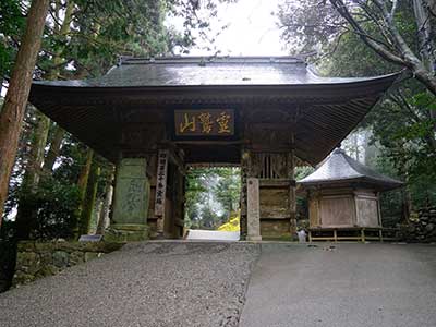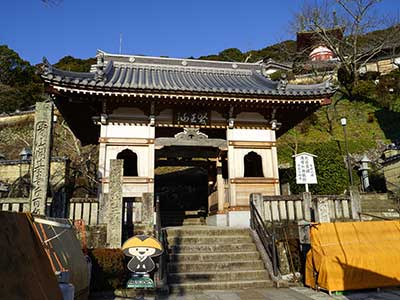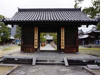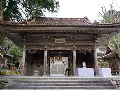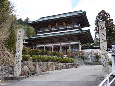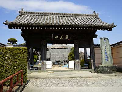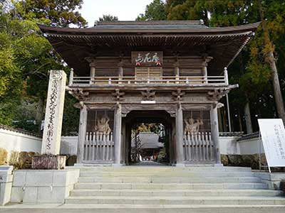 ここから進むと、国道377号線の左の山手に大きな仁王門があり、「醫王山」と金文字で彫られた扁額が掲げられ、二層になった大きな門です。