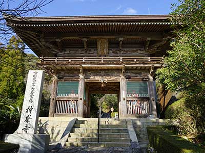 ご朱印や御影などをいただき、山門で一礼し、車に戻りました。12時45分です。そろそろお昼を食べないと思いながら、第7番札所十楽寺へと向かいました。
