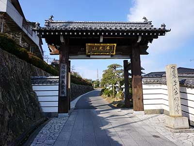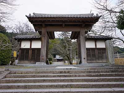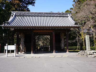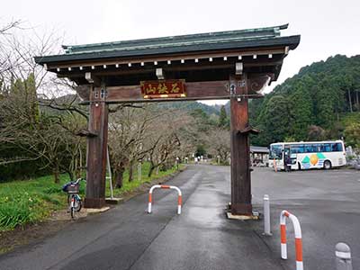 ここへの道はだいぶ狭いところもあり、ちょっと不安でしたが、ナビの通りに進むと道路の右側に駐車場がありました。そこから山門が見えたので、そこを進むと両側にツバキやツツジなどが植え込まれていました。