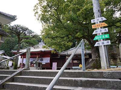 そこを入ると、右手に手水舎があり、手と口などをそそぎ、石段を上りました。その先は二股に分かれ、左に行くと大師堂、右に行くと本堂なので、先ずは右手に進み、本堂に向かいました。ここは四国八十八ヵ所霊場の結願のお寺です。よくぞここまで来れたという感慨がわき起こります。その思いを込めて、本堂でお経や真言を唱えました。すると、ここまでのお寺のいくつかが思い出されます。