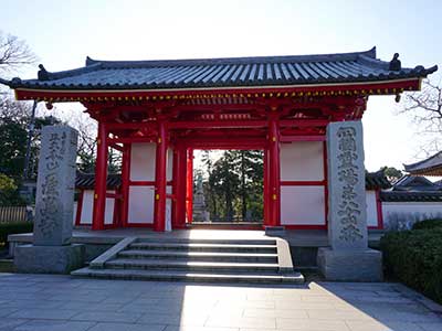 ここの仁王門は朱塗りの大きなもので、とてもよく目立ちます。この門をくぐると、静かな境内地があり、なんとなく山に囲まれているような落ち着いた雰囲気です。